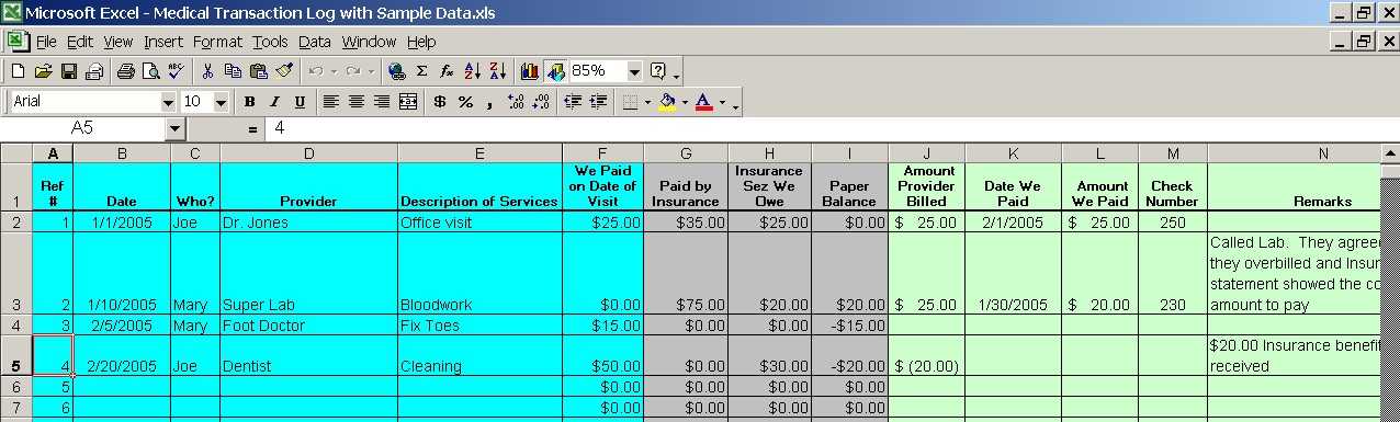 That's all there is to it! If a dispute arises later with a provider or insurance company, you can locate the transaction in the spreadsheet and use the "Ref #" to find the documents to deal with the problem. Simple and easy! Using the logic above, you should be able to determine what happened in the transactions in the sample spreadsheet shown above.